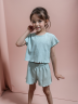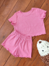 Этот костюм можно носить как пижаму благодаря своему легкому и воздушному дизайну. Шорты с эластичным поясом обеспечивают идеальную посадку, а топ с коротким рукавом и круглым вырезом дополняет образ.