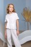 Детская пижама с брюками для девочки: футболка с короткими рукавами и легкие брюки. Изготовлена из дышащего материала с нежным принтом. Идеально подходит для комфортного сна в теплое время года.