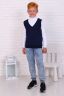 Жилетка для мальчиков, выполненный из мягкого трикотажа на основе хлопка, который дарит комфорт и не сковывает движения, позволяя ребенку быть активным. Модель прямого силуэта, с V-образным вырезом горловины. Горловина, манжеты и пояс оформлены рельефной резинкой. Универсальная вещь, которая подойдет для множества образов, как школьных, так и повседневных в стиле casual. Школьная коллекция