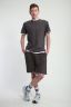 Костюм мужской состоит из футболки и шорт, выполнен из лакост 100% хлопок. Футболка отделана по низу планкой контрастного белого цвета, горловина обработана обтачкой из рибаны. Низ рукава и шорт обработан тканью контрастного белого цвета с необработанным краем. На шортах карманы в боку, пояс на резике с шнурком. Костюм идеально подойдет для спорта, отдыха и дома.