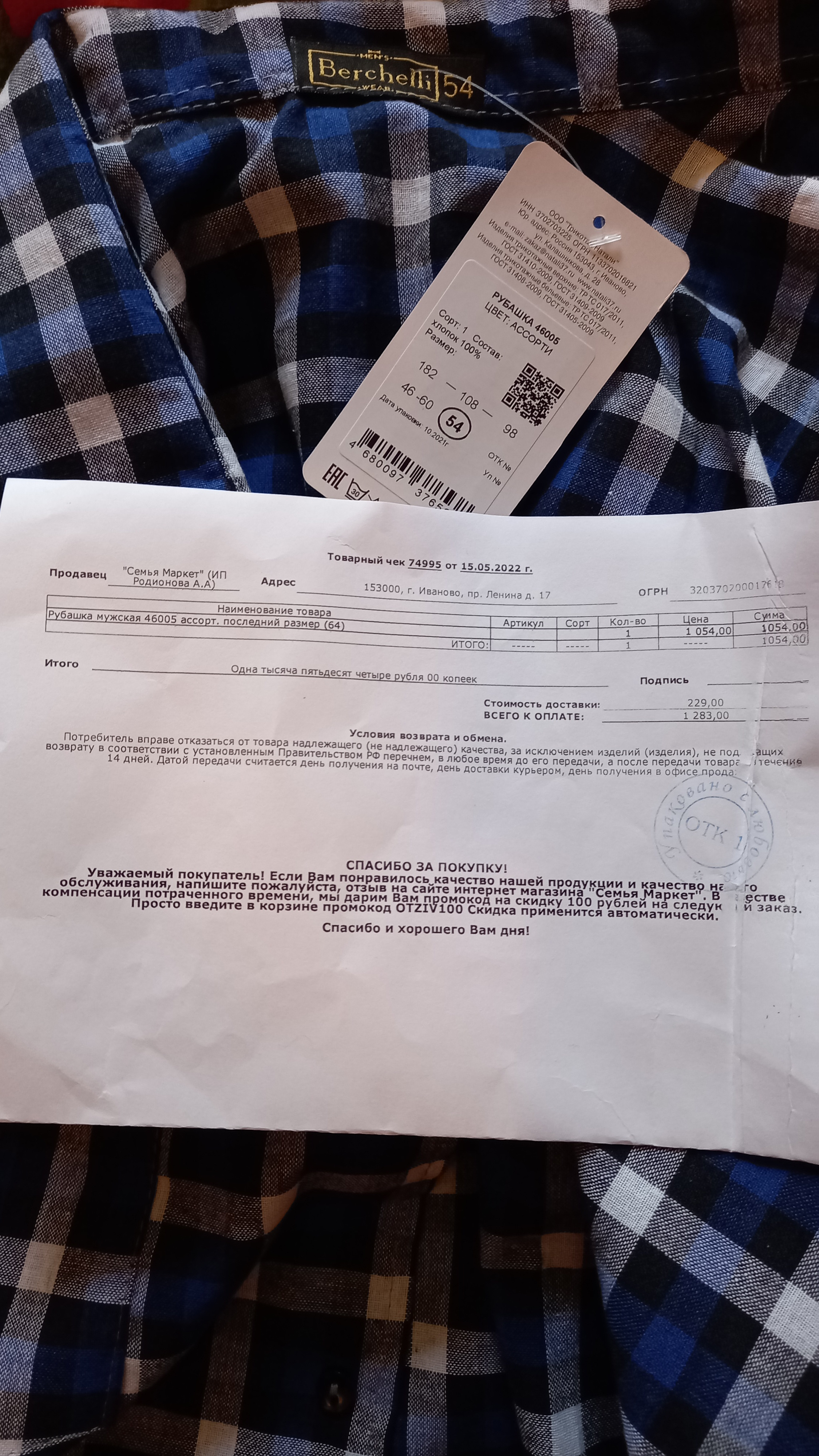 Кошмар, впервые воспользовался, обрадовался что есть большие размеры, и о чудо присылают рубашку, в аннотации к которой написано "ошибка в маркировке, в реальности она больше", таким образом из 54 размера сделали 64. Чушь конечно, мучится с возвратом не буду. В реальности расцветка совершенно не та и размер конечно тоже. Впечатление самое негативное. Естественно, услугами этого магазина более пользоваться не буду. Идет второй заказ посмотрим, что будет там, но что то мне подсказывает, будет тоже самое.