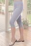 Бриджи женские облегающие, с высокой посадкой, пояс на резинке. Общая длина чуть ниже коленей.