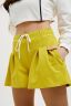 Стильные расклешенные шорты свободного кроя, на талии складки, пояс на резинке, удобные карманы в боковом шве и сзади.