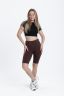 Велосипедки облегающего силуэта, с высокой линией талии. Пояс широкий отрезной с эластичной тесьмой внутри. Нижний срез обработан швом вподгибку.