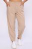 Модные женские брюки-бананы из смесовой ткани с содержанием льна. Свободные, зауженные к низу с помощью вытачек, широкий пояс на резинке, по бокам внутренние карманы. Длина брюк до щиколотки (рост модели 165 см). Очень комфортны и удобны в носке, не мнутся, отлично смотрятся со спортивной обувью.