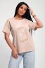 Футболка женская из гладкокрашенного трикотажа, хлопок 100%. Прямого силуэта, свободного облегания. горловина круглой формы. Рукав короткий. Низ изделия прямой. На полочке объемный принт, шелкография.