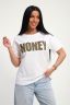 Футболка женская из гладкокрашенного трикотажа, хлопок 100%. Прямого силуэта, свободного облегания. горловина круглой формы. Рукав короткий. Низ изделия прямой. На полочке объемный принт, шелкография.