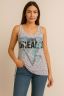 Женская майка с необычным подчеркивающим принтом. Модель выполнена из кулирного волокна с лайкрой.