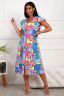 Легкий женский халатик из натурального трикотажа. Приталенный с поясом в боковых швах. Удобные накладные карманы. Расклешённый к низу. Длина миди. Игривый рукав крылышко. Горловина V-образной формы. Для более комфортной посадки на фигуре, на полочках и спинке рельефные швы. Застежка на тесьму молнию.