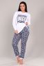 Костюм выполнен из приятного к телу 100% хлопчатобумажного полотна, дополненный интересным принтом - символом следующего года. Верх костюма - толстовка выполнена из кулирки, а горловина, манжеты и пояс из эластичной рибаны. Данный вид ткани здесь выбран не случайно, он обладает множеством достоинств: мягкость, гигроскопичность и гипоаллергенность. В свою очередь брюки из интерлока - имеют боковые карманы и пояс на резинке, обладают всеми теми же свойствами, но ко всему к этому ещё и не растягиваются при носке, не мнутся, устойчивы к каким либо воздействиям, что немаловажно для такого изделия, как брюки. Костюм станет излюбленной вещью вашего гардероба, в котором Вы будете себя чувствовать комфортно и привлекательно.