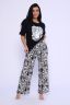 Костюм домашний, футболка прямого кроя с коротким рукавом и брюки свободного кроя.