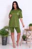 Костюм женский из масла. Состоит из велосипедок и футболки оверсайз. На полочке расположен карман с печатью. Рукав втачной.