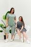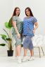 Костюм женский, туника и бриджи. Туника расширенная к низу с боковыми разрезами, низ фиксируется завязками. Горловина Y-образная, рукав короткий цельнокроенный, около плечевого шва небольшая сборка. Кокетка полочки и спинки из двух частей в полоску, соединяющихся под наклоном. На полочке накладной фигурный карман. Бриджи прямого силуэта, внизу брюк разрезы и утяжки. На передних частях внутренние карманы и боковые с бантовой складкой. Пояс выполнен на многоигольной машине.