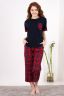 Отличный вариант для дачи, дома и летнего отдыха. Очень свободный крой. Футболка со спущенной линией плеча. На груди накладной карман, по низу рукавов манжеты. Свободные удлиненные бриджи, в боковых швах карманы.