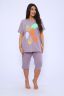 Домашний костюм женский изготовлен из ткани кулирка - мягкого и гладкого трикотажного полотна из хлопка. Костюм женский для дома и отдыха состоит из удлиненной футболки и бридж. Футболка прямого кроя, горловина круглая, обработана окантовкой, по бокам карманы. Рукав короткий. На полочке выполнен принт. За счет свободного кроя, брюки очень удобны и комфортны в эксплуатации. Состав: 100% хлопок.