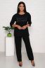 Модель свободного силуэта, на передней части верха стильный принт из страз. Костюм изготовлен из трикотажной комфортной ткани креп, она приятна к телу и на ощупь,не мнётся. Смотрится костюм стильно и современно, подойдёт и для повседневной носки , уместен и для торжества. Длина рукава в замерах указана от начала горловины