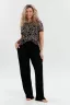 Современный женский костюм с актуальным принтом — идеальный выбор для тех, кто ценит удобство и яркий образ. Мягкая дышащая ткань приятно ощущается на коже, а свободный крой не стесняет движений. Верх с эффектным рисунком добавляет индивидуальности, а однотонные брюки отлично сочетаются с любой обувью. В этом костюме вы будете выглядеть безупречно дома, на прогулке или встрече с друзьями. Почувствуйте стиль, в который невозможно не влюбиться!