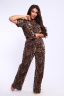Этот комплект воплощает в себе идеальное сочетание элегантности и уюта. Футболка с короткими рукавами и свободным кроем обеспечивает легкость и комфорт на протяжении всего дня. Яркий леопардовый принт добавляет оригинальности и смелости вашему образу, позволяя выделяться среди серых будней.