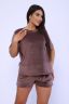 Костюм женский велюровый с шортами. Футболка с коротким рукавом, горловина обработана обтачкой, шорты на поясе. Костюм мягкий, приятный к телу, комфортный, идеально подойдет как для дома, так и для прогулок.
