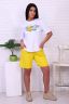 Костюм молодежный, яркий принт на футболке и яркие шорты.