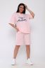 Костюм с шортами из кулирки с лайкрой. Кофта свободная с капюшоном с люверсами и шнурком. По переду принт ,рукав короткий на манжете, длинна до бедра .Шорты свободного покроя с карманами, длина до колена. На модели размер 48-50.Шнурки от партии могут отличаться. Размеры сдвоены.