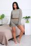 Костюм домашний с шортами из мягкого трикотажа СОТЫ. Комфортный комплект состоит из стильного, укороченного лонгслива с длинным рукавом на манжете и шорт с удобными боковыми карманами. Оригинальный 3Д рисунок, образованный путём сложного переплетения волокон, внешне напоминает пчелиные соты. Полотно мягкое, эластичное и прочное, легко стирается, практически не мнётся, не деформируется.