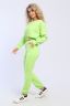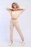 Костюм женский для повседневной носки. Данная модель выполнена из трикотажного полотна футер 2-х нитка. Толстовка свободного покроя с втачным рукавом. Манжеты на рукавах и горловина выполнены из эластичного трикотажного полотна кашкорсе. Пояс на толстовке и брюках выполнены из основной ткани под поясную машинку (отделочная тройная строчка). Брюки имеют по бокам карманы. По низу брюк вшита резинка 2,5 см.