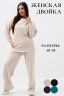 Женский костюм из мягкой, фактурной и приятной ткани. Вверх - худи оверсайз со спущенным рукавом и округлой горловиной, понизу обманка - иллюзия футболки, которая придает современный стиль двойке, низ - свободные и прямые брюки палаццо, по бокам карманы, пояс на резинке. Костюм идеально подходит для повседневной носки.