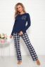 Комфортная и стильная женская пижама. Брюки в клетку с двумя боковыми карманами, на эластичном поясе и футболка с длинным рукавом, с печатью на полочке.