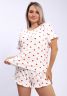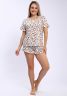 Эта уютная пижама состоит из мягкой футболки и шортов, выполненных из необычного материала, напоминающего лапшу. На принте изображены яркие красные и черные сердечки, создающие игривый и романтичный образ. Дополняет дизайн коричневый леопардовый узор, придающий комплекту стильный и дерзкий вид. Идеальный выбор для комфортных ночных и домашних образов, сочетая оригинальность и уют.