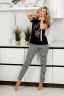 Пижама женская с брюками. Выполнена из натурального хлопка. Футболка украшена стильным принтом. Брюки в данной модели имеет полуприлегающий покрой и удачно подчеркивают достоинства фигуры. Выполнена из натурального хлопка, дизайн - всегда актуальная полоса, расположенная по длине изделия, визуально удлиняет и придает стройность фигуре.