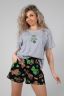 Костюм комбинированный женский с шортами. Данная модель выполнена из трикотажного полотна кулирка (хлопок 100%). Футболка в стиле оверсайз, на полочке присутствует принт, а горловина обработана потайным окантовочным швом. Отлично подходит для сна и отдыха.