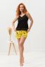 Комплект состоит из майки и шорт. Майка на тонких бретелях, с V-образной горловиной на полочке, с отделочным кантом по горловине и низу. Горловина и бретели обработаны бейкой из основного полотна. Шорты прямые, короткие, с манжетом и отделочным кантом, на резинке.