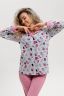 Красивая, мягкая и уютная хлопковая пижама согреет вас холодными зимними вечерами! Пижама-костюм, состоящая из прямых брюк свободной формы и легкого жакета-рубашки на центральную застежку на пуговицы с длинным рукавом. Воротник английский отложной с контрастным кантом по краю. Брюки на поясе с резинкой и блестящей тесьмой, низ с отрезной манжетой с кантом. Пижама не стесняет движений, в ней приятно спать и заниматься домашними делами. Комплект можно купить в подарок символ нового года родным и близким!