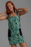 Платье полуприлегающего силуэта, с крадратным вырезом спереди и "борцовкой" сзади, длиной выше колена, без рукавов. Бретели на полочке выполнены из кашкорсе с контрастными полосами. Вдоль боковых швов расположены лампасы и накладные карманы из отделочного полотна. Горловина и проймы обработаны бейкой из основного полотна.