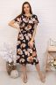 Летнее лёгкое платье из тонкой ткани с цветочным принтом. Модель длиной чуть ниже колена, отрезная по линии талии, с напускным верхом и коротким цельнокроеным рукавом. В поясе мягкая резинка. На округлой горловине небольшой вертикальный разрез на завязках. Удобное платье на каждый день.