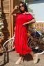 Фасон платья позволяет легко скрыть недостатки фигуры и при этом элегантно выглядеть! Платье отрезное выше линии талии, длиной ниже колена. Рукав цельнокроеный, короткий, с манжетом из отделочного полотна. Верхняя часть платья выполнена из эластичного полотна, юбка со сборкой по линии талии. Горловина асимметричная, с эластичной бретелью, обработана обтачкой из отделочного полотна.