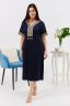 Платье прямого силуэта, с V-образной фигурной горловиной, с боковыми карманами, с разрезами в нижней части боковых швов. Рукав цельнокроеный, короткий, с манжетом из отделочного полотна. Горловина обработана обтачкой из отделочного полотна.