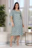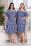 Платье женское, полуприлегающего силуэта. Рукав короткий цельнокроеный на манжете с одной стороны, с другой стороны открытое плечо на широкой бретели. На полочке один накладной карман, в боковых швах разрезы. Сочетание ткани "в полоску" и горох, придают платью особую выразительность.