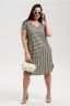 Платье прямого силуэта, с V-образной горловиной, с фигурной линией низа, с удлиненной спинкой, с карманами в боковых швах. Рукав цельнокроеный, короткий. Горловина и проймы обработаны бейкой из основного полотна.