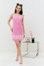 Сорочка на бретелях полуприлегающего силуэта, с фигурной линией низа, длиной выше колена. На полочке внизу обработан декоративный разрез. Проймы, бретели и разрез на полочке обработаны бейкой из основного полотна.