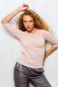 Одной из особенностей этого джемпера с укороченным рукавом является его удлиненная спинка, она визуально удлиняет силуэт и акцентирует внимание на Вашей фигуре. Рукава 3/4, декорированные подворотами, придают кофте легкость и свободу движений.