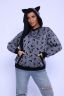 Молодёжная толстовка-худи из теплого трикотажа на меху. Толстовка в свободном стиле-оверсайз с удобным карманом-кенгуру, спущенная пройма, длинный рукав, капюшон с игривыми ушками. Низ джемпера, манжеты, капюшон и вход в карман-кенгуру обработаны эластичной кашкорсе. Стильная, комфортная толстовка не стесняет движения, отличный вариант для занятия спортом, а так же для прогулок в холодное время года.