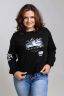 Толстовка оверсайз - трендовая модель, которая прекрасно впишется в любой модный лук. Толстовка длинной до середины бедра по полочке и удлиненной спинкой, со спущенной линией плеча. Стильная черно-белая печать. Манжеты и горловина из кашкорсе в тон ткани. Низ изделия регулируется кулиской.