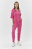 Толстовка прямая, свободная, с капюшоном, на молнии. Рукав короткий, на манжете. На полочке расположены фигурные накладные карманы. Вдоль спинки расположена вставка с декоративными элементами.