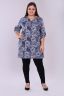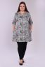 Удлинённая женская туника свободного кроя выполнена из 100% хлопчатобумажного полотна. По горловине расположен треугольный вырез, рукав 3/4. На рукавах имеются паты, закреплённые светлыми серебристыми пуговицами, что делает изделие более привлекательным. Данная туника для полноразмерных дам помогает скрыть недостатки фигуры и подчеркнуть достоинства, тем самым создавая стильный образ, в котором Вы будете чувствовать себя максимально комфортно и уверенно. На модели 52 размер