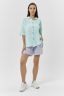 Женская туника-рубашка на пуговицах, с отложным воротником, свободная, с удлиненной спинкой и фигурной линией низа. Спинка со складкой с декоративной шнуровкой. Рукав короткий. Можно составить комплект с шортами 8259 или брюками 8266